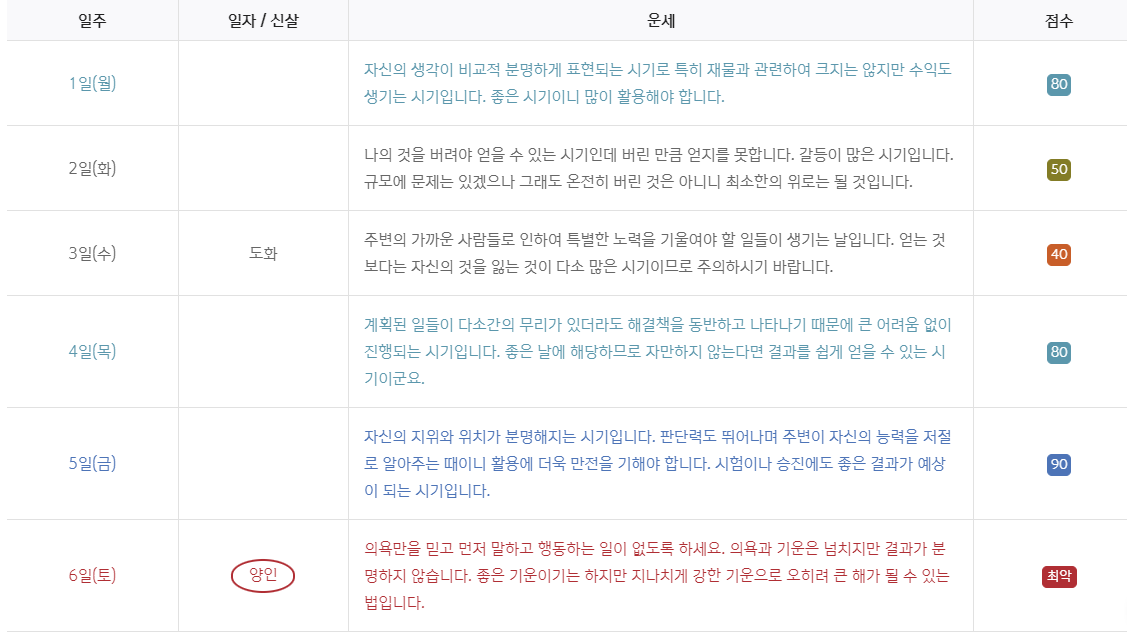 다만 운세를 너무 맹신하기보다는 안 좋은 예방한다는 생각으로 보시면 도움이 될 것 같습니다.