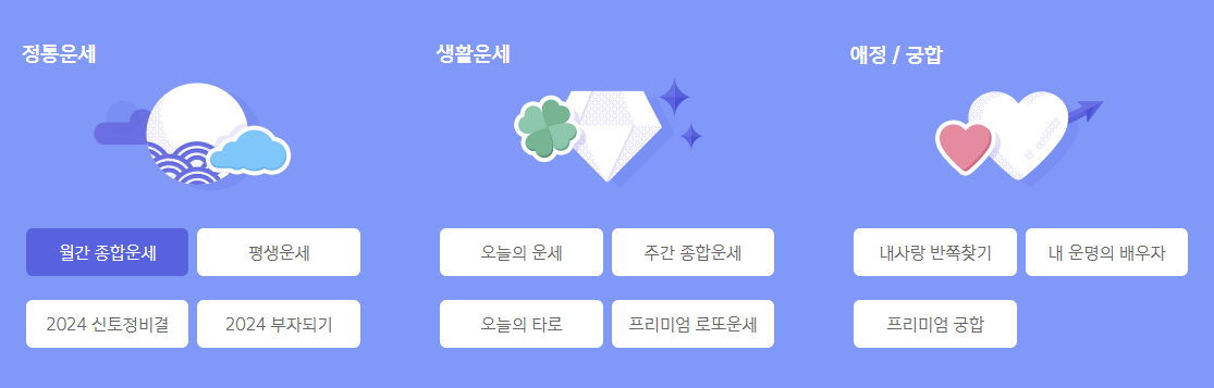 많은 운세 사이트들이 존재하지만, 대부분 회원가입이나 비용 결제를 요구합니다.
