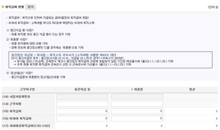 퇴직금 세금 자동계산