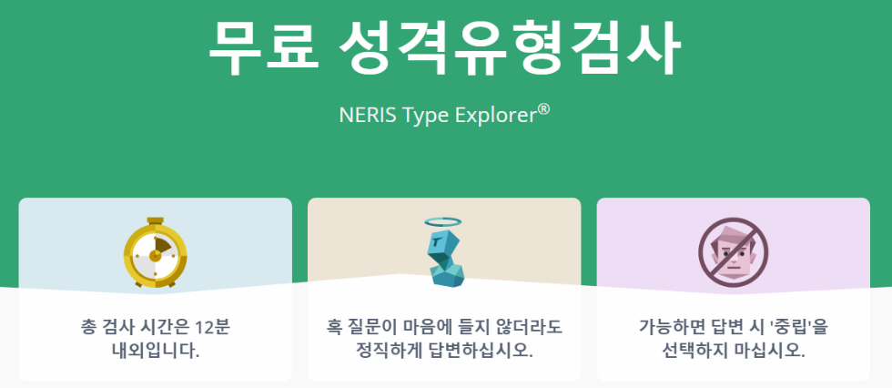 중립적인 답변은 피하는 것이 좋으며 모든 질문에 답하면 자신의 성격 유형과 그에 대한 자세한 설명을 확인할수 있습니다.